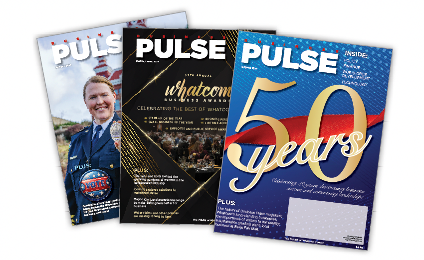 Business Pulse magazine is mailed bi-monthly to subscribers and Whatcom Business Alliance members. Additional copies are distributed at Business Pulse and WBA events, in waiting rooms, professional service offices, hotel rooms and other businesses throughout our region.